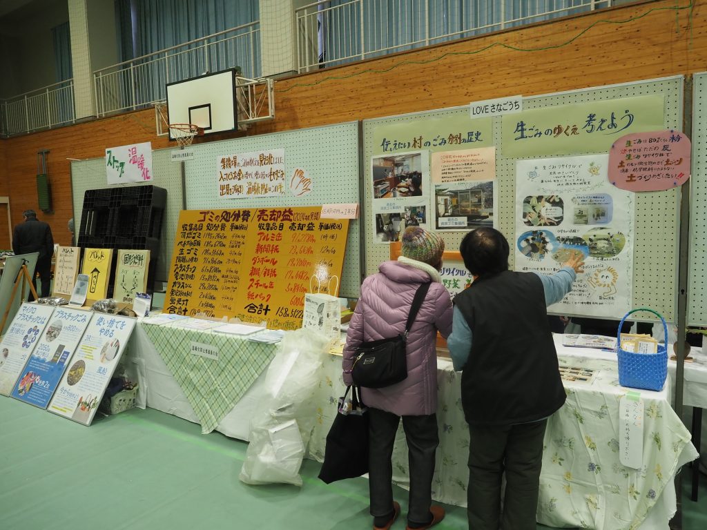 また、佐那河内村内の集積場に持ち込まれたゴミの見える化として、今年度も処分費用やゴミの売却益の金額を示し、如何に、ゴミの処分に出費が発生しているのか、そして、きちんと分別されれば資源・売却益につながることを分かりやすく伝えられていました。今年度は、「温暖化防止推進員の会」の展示の隣で、松長礼子さんが会長を務められている「Loveさなごうち」の展示も合わせて行われ、村のごみ分別の歴史について紹介されるとともに、村内の処分費の中でも処分費用が高い生ごみのリサイクルについて、佐那河内中学校での土づくり・花壇への活用や、その土で栽培された野菜の調理実習等の取組についても紹介をされていました。